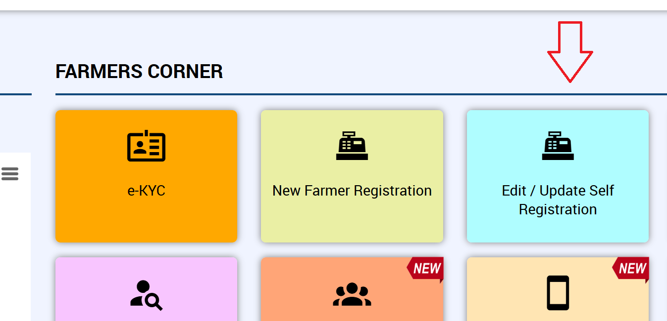 इसके अलावा अगर आपने हाल ही में रजिस्ट्रेशन किया है, और आप अपना रजिस्ट्रेशन फॉर्म अपडेट करना चाहते हैं तो आप Updation of Self Registered Farmers विकल्प पर क्लिक करके अपना रजिस्ट्रेशन अपडेट कर सकते हैं.